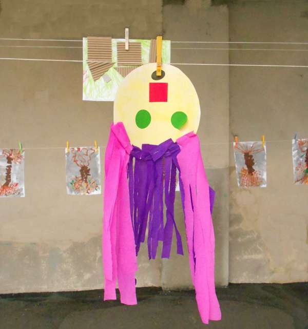 Cette réalisation artistique est faite par tous au moyen de fils et de pinces à linge, et de réalisations plastiques de format A4. Cette installation a pour but de promouvoir la pratique artistique et développer le lien social.